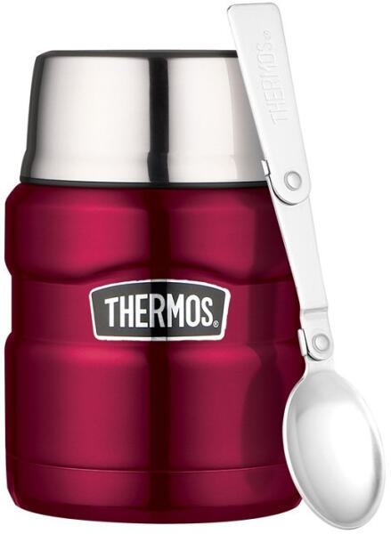 Ételtermosz:A Thermos FUNtainer ételtermosz tökéletes választás az iskolai ebédek, rágcsálnivalók, kirándulásra vagy utazásra elvitt ételek optimális hőmérsékleten tartására. Rozsdamentes acél, vákuumszigetelt termosz 470 ml kapacitással. A termosz széles nyakkal rendelkezik, igy könnyű beletenni az ételt és enni belőle. A termosz alját egy tartós csúszásgátló r