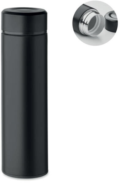 Duplafalú termoszpalack újrahasznosított rozsdamentes acélból (90% újrahasznosított rozsdamentes acél és 10% rozsdamentes acél), belső kerámia bevonattal. Szivárgásmentes. Űrtartalom: 420 ml.