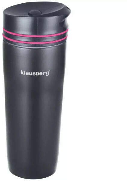 Klausberg utazó bögre / termosz kiváló minőségű rozsdamentes acélból. Fekete szín rózsaszín dekorációs gyűrűvel. Duplafalas hőzáró kivitel, ami megtartja az ital hőmérsékletét, emellett a külső fal nem forrósodik át. Ellenáll a mechanikai sérüléseknek. Menetes dupla falú tető, gomb segítségével nyitható-zárható. Kapacitás: 380 ml