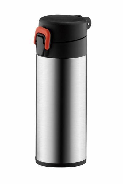 Rozsdamentes acél, duplafalú, vákumos termosz 0,5 l űrtartalommal.