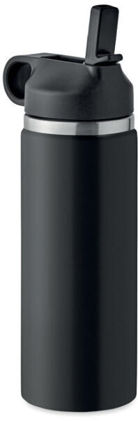 Duplafalú, újrahasznosított rozsdamentes acél (90% újrahasznosított rozsdamentes acél, 10% rozsdamentes acél) termoszpalack, PP fogantyús és beépített szívószálas fedéllel. Szivárgásmentes. Űrtartalom: 500 ml.