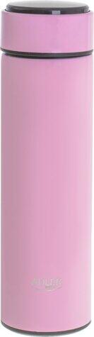Duplafalú rozsdamentes acél termoszpalack, kampós akasztóval a fedélen. Űrtartalom: 500 ml.