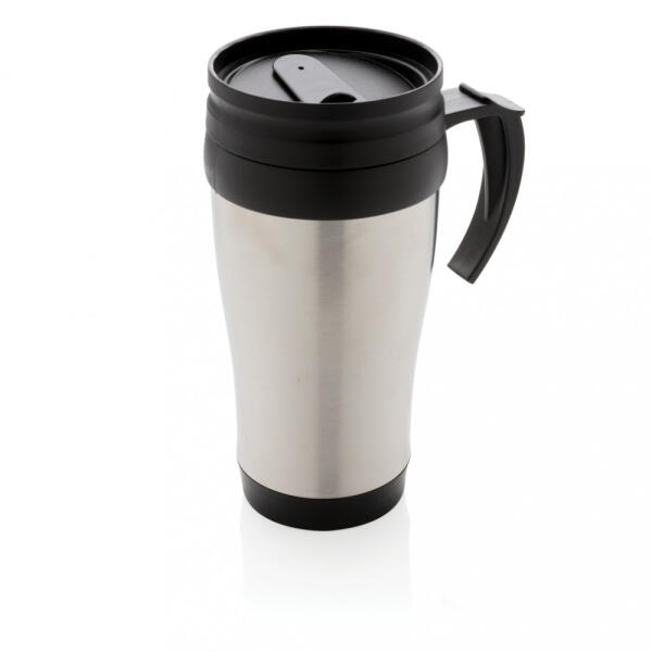 Rozsdamentes acélbögre fekete PP műanyag fedéllel és belsővel, 0,35 l űrtartalommal.