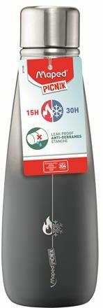 Elegáns megjelenésű rozsdamentes acél palack, mely 15 órán át melegen és 30 órán át hidegen tartja kedvenc italát. - tökéletesen záródó, mégis könnyen kezelhetõ, csavaros kupak - szivárgásmentes - rozsdamentesacél test - vákuumszigetelés, ami megakadályozza a külsõ páralecsapódást - űrtartalom: 500 ml - a MAPED "Concept Adult" uzsonnás táskákba könnyen behelyezh