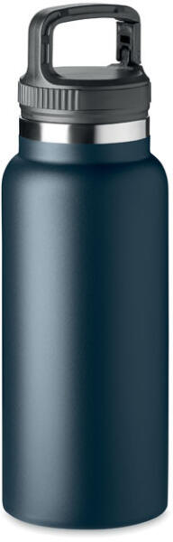 Duplafalú rozsdamentes acél termoszpalack kampós akasztóval a fedélen. Űrtartalom: 970 ml.
