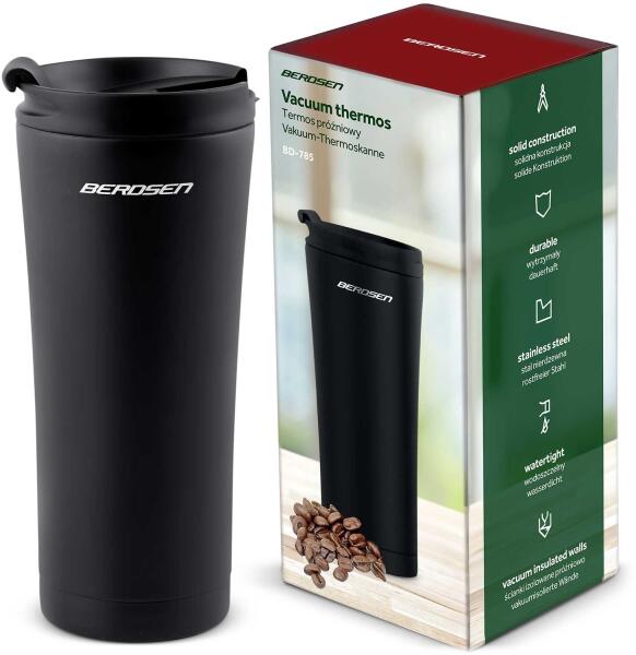Hideg és meleg italok tárolására alkalmas, minőségi rozsdamentes acél, korrózió- és páralecsapódásálló, szoros kupak, akasztó, űrtartalom 480 ml. A kiváló minőségű 480 ml-es ital termoszban a forró italok akár 12 órán át, a hideg italok pedig akár 24 órán keresztül is tárolhatók. Kiváló minőségű rozsdamentes acélból készült, amely ellenáll a korróziónak