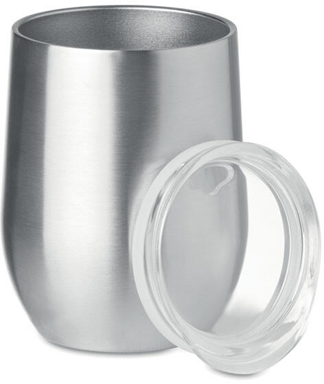 300 ml duplafalú, 304-es osztályú rozsdamentes acél bögre, borospohárként is használható.