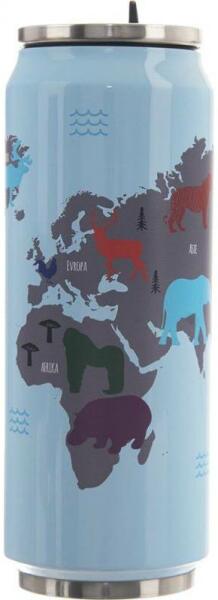 A rozsdamentes acél termosz konzervdoboz alakú díszítéssel nagyon érdekes és fantáziadús formájú. .