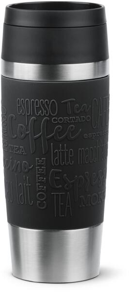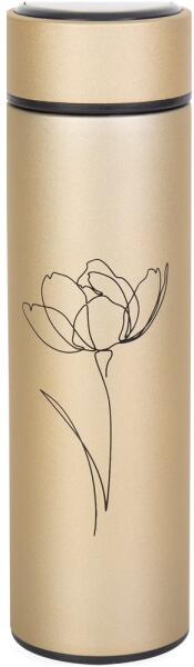 Rozsdamentes acélból készült termosz, gumiborítással, 500 ml. Kartondobozban szállítjuk.