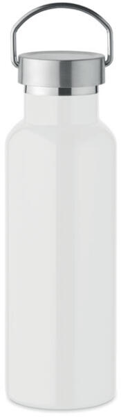 Duplafalú termoszpalack újrahasznosított rozsdamentes acélból (90% újrahasznosított rozsdamentes acél és 10% rozsdamentes acél), fogantyúval ellátott fedéllel. Szivárgásmentes. Űrtartalom: 500 ml.