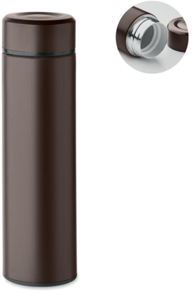Duplafalú termoszpalack újrahasznosított rozsdamentes acélból (90% újrahasznosított rozsdamentes acél és 10% rozsdamentes acél), belső kerámia bevonattal. Szivárgásmentes. Űrtartalom: 420 ml.