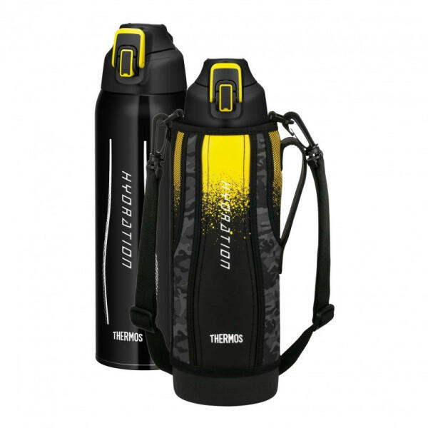 Nemesacél vákuum szigetelt termo-kulacs tokkal és szíjjal 1,5 l űrtartalommal fekete-sárga kivitelezésben. A folyadékpótlás nagyon fontos sportolás közben. A vákuum szigetelt Thermos Sport termosz hosszú ideig a kívánt hőmérsékleten tartja az italt. A termosz kivitelezése megfelel a sportolók igényeinek – gyors folyadékpótlás, könnyű és gyors nyitás és zárás, egys