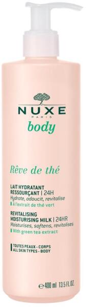 Ellenállhatatlanul selymes puhasággal borítja be a bőrt: zöld tea kivonatot és 7 féle 100%-ban természetes eredetű cukor komplexet tartalmaz, ennek köszönhetően 24 órán keresztül tart a hidratáló hatás. Kényelmes textúrája azonnal felszívódik, melynek köszönhetően nem kell várnunk az öltözködéssel. Engedje érzékeit szárnyalni az új Rêve de thé testápoló csal