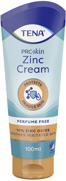 A Tena ProSkin Cink kenőcs egy nyugtató és védő hatású krém inkontinenciagondozáshoz; 10% cink-oxidot, repceolajat és E-vitamint tartalmaz. Extra védelmet biztosító összetétele ideális az irritált, sérülékeny, idős bőr ápolásához.