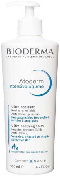 BIODERMA Atoderm Intensive Nyugtató Balzsam 500ML: Intenzív nyugtató, bőrmegerősítő balzsam viszketéscsillapító hatással irritált, atópiás, ekcémás bőrre. Viszketéscsillapító, bőrgyógyászatilag aktív összetevőjének, a PEA -nak köszönhetően azonnal csillapítja a viszketést és csökkenti a vakarózás kényszerét. Nyugtató, tisztító összetevőkben gazdag formul