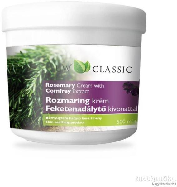 Az UW Classic Rozmaring krém Feketenadálytő kivonattal fájdalomcsillapító, izomlazító és gyulladáscsökkentő hatású. Használható izomgörcsök, ízületi és izomfájdalmak esetén, véraláfutások, ficamok, csonttörések esetén. Fáradt végtagjaidnak egy igazán frissítő kényeztetésre van szüksége? Ne csak élénkítse, hanem ápolja is az igénybe vett végtagjaidat? Kis