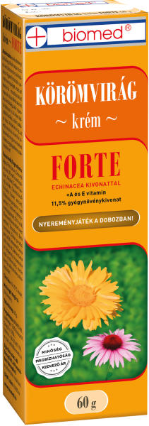 A Biomed által gyártott Körömvirág krém nehezen gyógyuló zárt felületi sebek, hámsérülések, gyulladásos bőrbetegségek időszakában ajánlott, bőrápolási céllal. A krém stimulálja a bőr természetes immunitását, nyugtatja, védi az érzékeny, irritált, sérült bőrt. Túlzott napozás, szoláriumozás után különösen ajánlott. Enyhe kellemes illata természetes gra