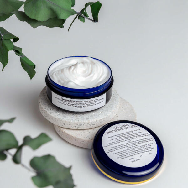 A Kék Lukács Mélyhidratáló krém 100 ml kiszerelésben minden bőrtípusra alkalmazható hidratáló krém, amely nem hagy ragacsos érzetet a bőrön, gyorsan beszívódik, puha érzést biztosít. Növényi olajokban gazdag, hidratálja és lággyá varázsolja még a kicserzett, száraz bőrt is. Visszaadja a bőr puhaságát és védi a környezeti ártalmakkal szemben. Képes a bőrszár