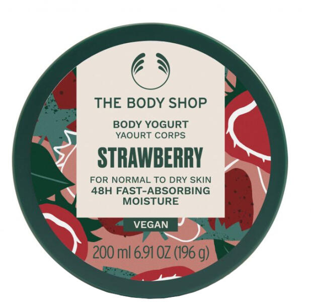 A könnyű állagú, eper illatú vegán testjoghurt azonnal felszívódik a bőrbe és akár 48 órán át hidratálja azt.