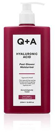 Q+A Post-Shower Moisturiser Hyaluronic Acid 250ml Q+A hialuronsavas tusolás utáni hidratáló testápoló, mélyen tápláló avokádó- és mogyoróolajjal, valamint bőrbarát prebiotikumokkal gazdagítva a nyugtató hidratálás érdekében! Könnyű, nem zsíros formula, amelyet úgy terveztek, hogy közvetlenül a zuhanyzás után használhassuk, könnyedén beszívódik, hosszan tartó hid