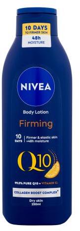 A Nivea Q10 + Vitamin C Firming Body Lotion testápolót száraz bőrre tervezték, és mindössze 10 nap alatt visszanyeri az energiáját és feszességét. Tartsa bőrét feszesen a Nivea Q10 + C-vitamin testápolóval! feszesebb bőr mindössze 10 nap alatt, intenzíven hidratál 48 órán keresztül, növeli a bőr puhaságát és rugalmasságát, kollagénfokozó komplexumot tartalmaz 99,5%-