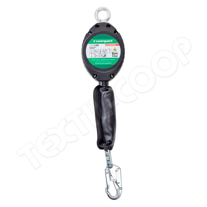 COVERGUARD 7EDGS10NSI - EDGE VISSZAHÚZHATÓ ZUHANÁSGÁTLÓ 6M: • vízszintesen és függőlegesen is használható, az éles szélek kockázata esetén (például tetőfedés) • hossza: 6 m • anyaga: élekhez szegélytesztelt 25 mm széles poliészter hevederszalag • egy acél karabiner és egy forgószemes acél kampó • ház anyaga: erős polimer műanyag • forgószem • súly: 2,