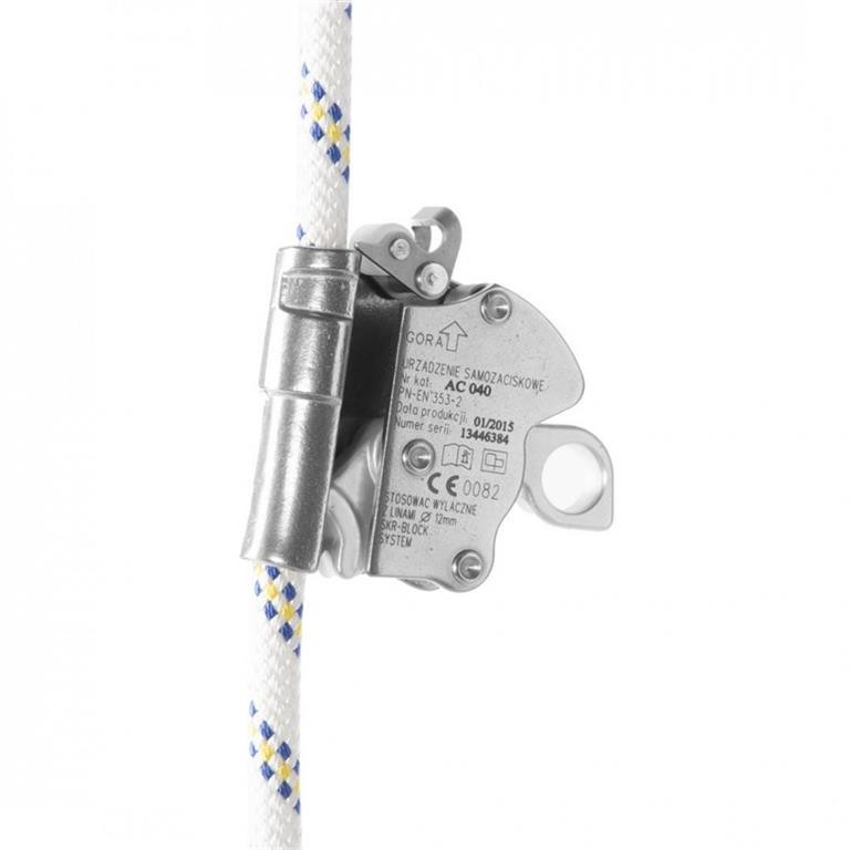 CADO BLOCK ZUHANÁSGÁTLÓ: • hajlékony rögzített vezetéken alkalmazott lezuhanásgátló készülékek horganyzott nemesacélból • a fém fékbetét nyitáskor mindkét irányban szabadon fut, a reteszelés már 5 kg-os terhelésnél önzáróvá válik • 6 kN-nál kisebb fékezőerővel max.100 kg tömegű személy zuhanását kevesebb mint 1 m fékúttal állítja meg • zuhanásgá