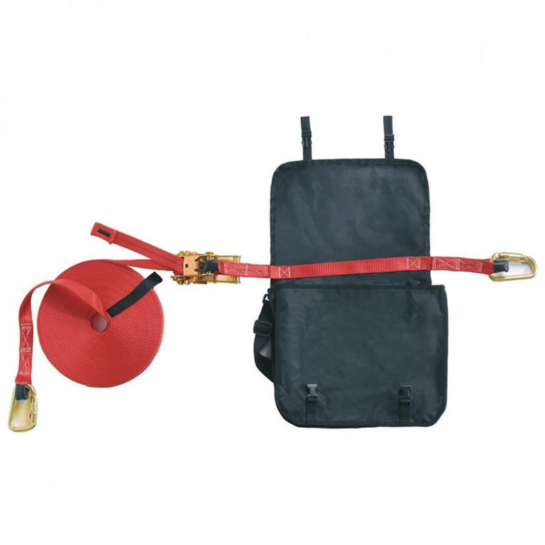 TOPLOCK 71750 EGYSZEMÉLYES VÍZSZINTES KIKÖTŐHEVEDER: • egyszemélyes, 3-15 m hosszú, állítható, vízszintes kikötőhevederzet • 19 m hosszú, 35 mm széles, piros munkaheveder és 0,7 m hosszú, 50 mm széles, fekete csatlakozó heveder rávarrott tartótáskával • racsnis, fém hossz- és feszességállító, műanyag fogantyúkkal • két acélkarabinere segítségével a kiköt