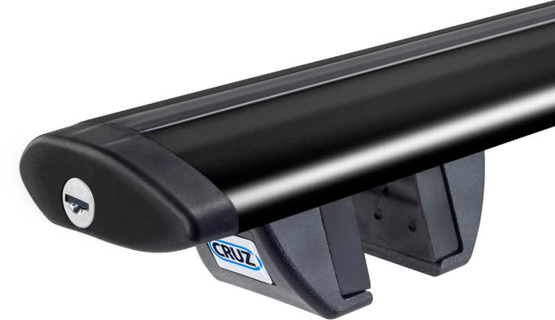 2 db Cruz Airo Dark R128 tetőcsomagtartó tetőkorlátra Alumínium aerodinamikus, csendes tetőcsomagtartó a tetőkorláttal ellátott járművekhez. Fekete eloxált kivitel. Zárható.