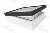 AZ ABLAK SZERKEZETE: Az F típusú, sík felülvilágító ablak keskeny, modern kinézetű, elegáns megjelenésű termék, kiváló hőszigetelési paraméterekkel. A keret szerkezete azonos a kupolás felülvilágító ablakéval, a fő különbség a modern gyártási technológiának köszönhetően az esztétikus és innovatív üvegezésben rejlik. Manuálisan nyitható kivitel.