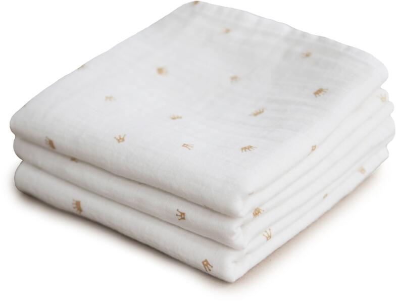 Az apró koronákkal díszített muszlin pelenka mindkettőtök kedvence lesz. A könnyű és légáteresztő pelenka számtalan felhasználási lehetőséggel rendelkezik. Használd nyári takaróként, nyálkendőként, akár kispárnaként a kicsi feje alá. Nedvszívó anyagának köszönhetően rendkívül praktikus kiegészítő. Egy csomagban három textilpelenka található.