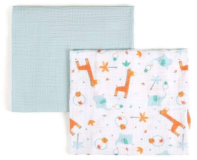 FUNNABABY - Muszlin pelenkák 2 db Girrafe Blue 90 x 90 cm