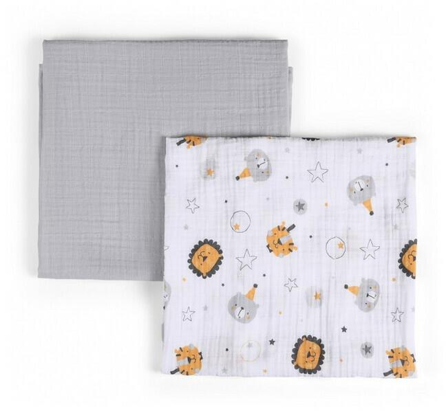 FUNNABABY - Muszlin pelenkák 2 db Circus Grey 90 x 90 cm