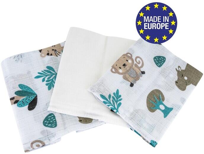 BOMIMI - Pamut pelenka Premium 140 g/m2 nyomott mintával, 80x70, 3db, MOBIL ÁLLATKERT