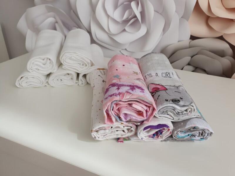 New Baby pamut pelenkák nélkülözhetetlen része a babakészletnek. A csomagolás 3 db-ot tartalmaz. Megfelelően megválasztott színek kislányoknak. A pelenkák 100% pamutból készülnek. Higiénikusak, nem okoznak allergiás reakciót és segítik az újszülöttek csípőízületeinek egészséges fejlődését. Nem csak pelenkázáshoz használható, hanem a baba feje alá is kiságyban