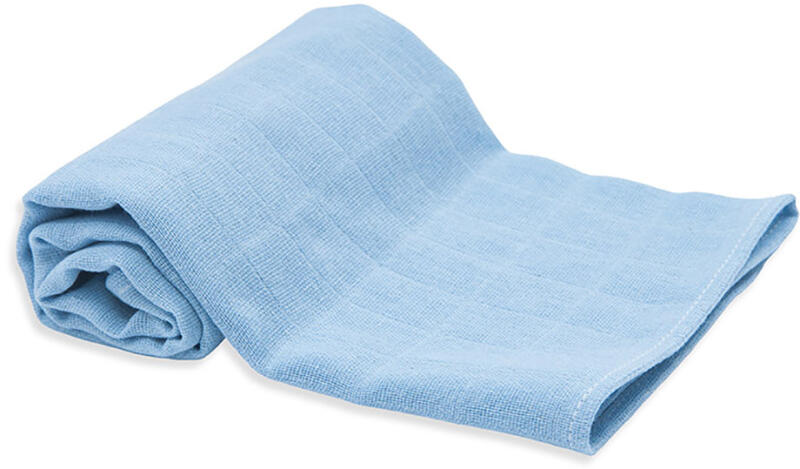 Két oldalán szegett, 70×70 cm-es, tetra textil pelenka, kék színű. Anyaga: 100% pamut