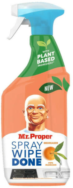 Fújj! Törölj! Kész! Nem marad utána más, csak ragyogó csillogás Eltávolítja a zsíros szennyeződéseket Növényi alapú összetevővel (a feldolgozható, felületaktív anyagok 82%-a) Biztonságosan alkalmazható az élelmiszerrel érintkező felületeken Újrahasznosítható flakon Nem hagy durva vegyszermaradványokat Mr. Proper Wipe Done Mandarin konyhai szórófejes tisztítószer