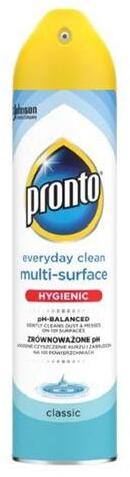 A Pronto Multi surface általános felülettisztító aeroszol a lakás fém, fa, üveg, elektromos készülékeinek felületeit most könnyedén tisztán tarthatja. Nem használható plazma/LCD képernyőkhöz és kezeletlen fafelületeken. Kíméletesen tisztítja a kemény felületeket; eltávolítja róluk a port és a szennyeződéseket. Összetevők:
