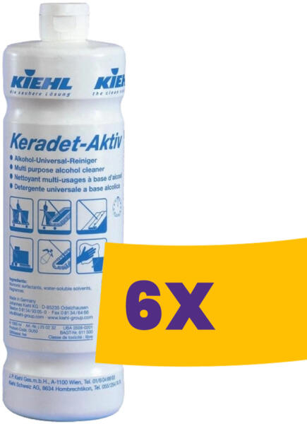 Aktív tisztító, higiénikus hatású alkoholos tisztítószer, hosszan tartó illattal. A Keradet-Aktív csíkmentesen szárad, ezért különösen a magas fényű felületek tisztítására alkalamas. Felhasználási terület Minden vízálló felületen, berendezési tárgyon és padlóburkolaton, valamint bevonattal védett felületen használható.