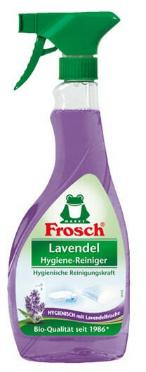 Általános tisztítószer szórófejes FROSCH Levendula környezetbarát 500 ml A levendulából nyert növényi kivonat hatásosan távolítja el a piszok- és szappan maradványait, valamint a víz- és a vízkő nyomait. A természetes levendula kivonatnak köszönhetően higiénikus tisztaságot biztosít az általa tisztított felületen. Használati utasítás: A fúvóka kupakját forgassa