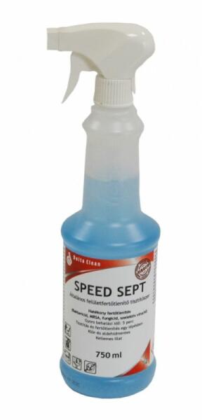 Fertõtlenítõ hatású tisztítószer szórófejes 750 ml Speed Sept GHS piktogram: Figyelmeztetés: Figyelem Figyelmeztetõ mondatok: H315 Bõrirritáló hatású. H319 Súlyos szemirritációt okoz. H400 Nagyon mérgezõ a vízivilágra. H412 Ártalmas a vízi élõvilágra, hosszan tartó károsodást okoz. Enyhén lúgos fertõtlenítõ tisztítószer, mely optimális összetételű keverék