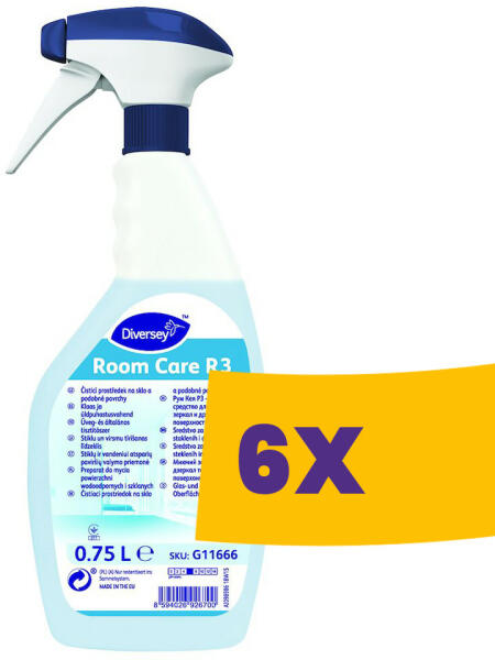 Folyékony ablaktisztítószer, mely általános tisztításra is alkalmas. A Room Care R3 egy használatra kész üvegtisztítószer a csíkmentes takarításhoz, tükrökhöz és más vízálló, kemény felületekre. Magas hatékonyság, pH semleges Gyorsan, csíkmentesen szárad Könnyed, kellemes és friss illat Egyedi szagsemlegesítő technológia (ONT) Egyszerűen permetezhető és töröl