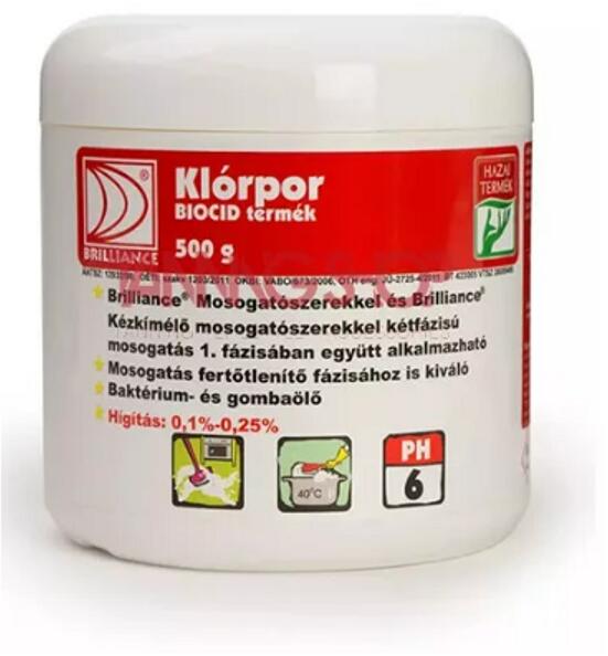 A Brilliance® Mosogatószer szuperkoncentrátummal , Mosogatás fertőtlenítő fázisához is kiváló Baktérium-, gombaölő, virucid Hígítás: 0,1% – 5%6 db/# Klórpor 700 g Brilliance termék alkalmazásakor ügyeljen a biztonságra!Használat előtt mindig olvassa el a címkét és a használati útmutatót!Katalóguskód: 42798