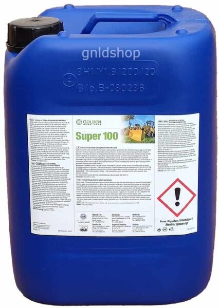 A Super 100 egy folyékony ipari tisztítószer, amelyet kifejezetten nehéz, ipari jellegű tisztítási munkákra fejlesztettek ki, és főleg zsír vagy olaj eltávolítására alkalmas:Ez a rendkívüli teljesítményű ipari tisztítószer nem háztartási használatra készült. Különböző arányokban oldható vízben, a gazdaságos használat és a feladat nehézsége függvényében. 1: