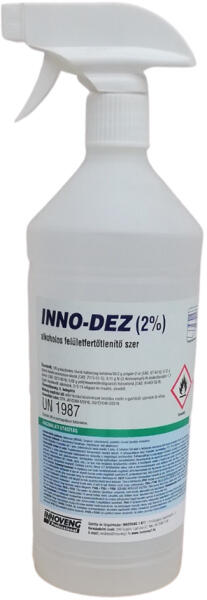 FELÜLETFERTŐTLENÍTŐ SZÓRÓFEJES 1 LITER ALKOHOLOS INNO-DEZ 2% Foglalkozásszerű felhasználók részére készült, a felhasználásra kész folyadék (terméktípus PT2, PT4) alkalmas, mosható és alkoholálló felületek fertőtlenítő tisztítására, fertőtlenítésére. A széles mikrobiológiai hatásspektrum biztosítja a megbízható fertőtlenítést. Felhasználható a szépség