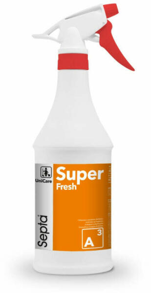 A Septa Superfresh A3 professzionális tisztítószer a levegő felfrissítéséhez. Használatra kész kész készítmény kellemes friss illattal, hosszan tartó hatással. A speciális formula semlegesíti a kellemetlen szagokat, különösen a dohányfüst és a légkondicionáló szagát. Középületek helyiségeiben, irodákban, szállodákban, éttermekben, kocsmákban használható. Autó