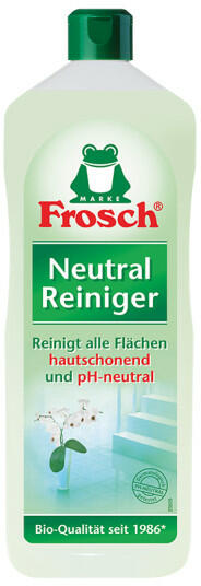 Általános tisztítószer, mely pH semleges, dermatológiailag tesztelt formulájának köszönhetően napi használat mellett is kíméletes mind a kézhez, mind a tisztított felületekkel. Felmosáshoz, és lemosáshoz . A Frosch pH semleges általános tisztítószer e egy különösen gazdaságos megoldás, hiszen mosható felületek széles körén alkalmazható akár nagy gyakorisággal is