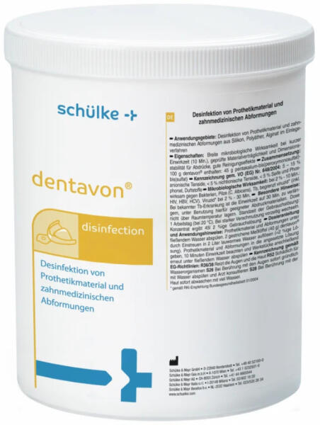 Aktív oxigén alapú aldehidmentes fertőtlenítőszer fogászati lenyomatok fertőtlenítésére. széles hatásspektrum – baktericid, levurocid, virucid ALKALMAZÁSI TERÜLET Alkalmas szilikonból és poliéterből készült fogászati lenyomatok fertőtlenítésére. ALKALMAZÁS MÓDJA A munkaoldat 1 munkanapig megtartja a stabilitását, mialatt garantált a teljes mikrobiológiai hatékony