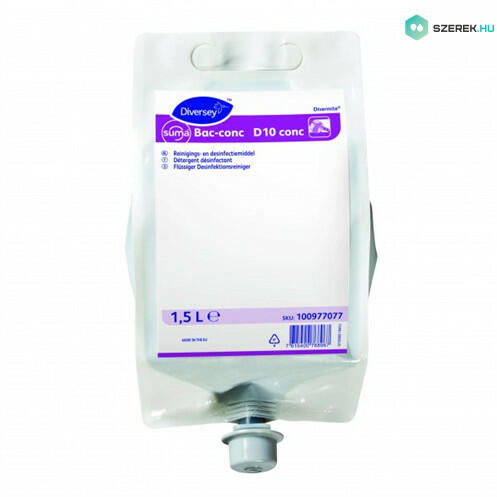 SUMA Bac conc D10 Erősen koncentrált tisztító- és fertőtlenítőszer Termékleírás A Suma Bac conc D10 conc egy erősen koncentrált tisztítószeres fertőtlenítőszer minden felület tisztítására és fertőtlenítésére, beleértve az élelmiszeripari helyiségeket is. Legfontosabb tulajdonságok A Suma Bac conc D10 conc egy kvaterner ammóniumvegyület, egy szekvesztrálószer és
