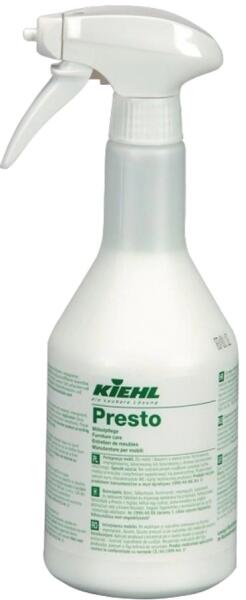 A Presto egy tisztító és ápoló viaszolaj-emulzió, amely fényes ápolófilmet képez. A Presto eltávolítja az alkohol és vízfoltokat, ujjlenyomatokat és más szennyeződéseket. A csekély felületi sérülések a Presto-val való kezelés után szinte láthatatlanok. Felhasználási terület Bútor, falburkolat, furnírozott, impregnált, lazúrozott és lakkozott fafelület és műany